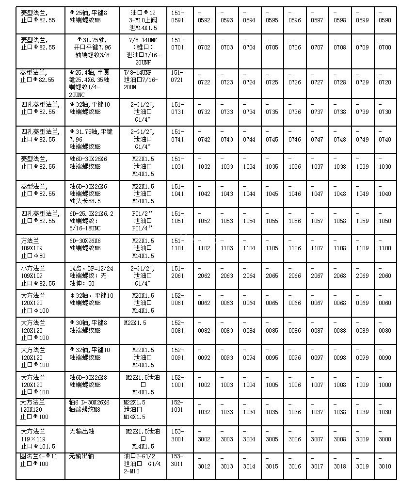 排量(ml/r) | 80 | 100 | 125 | 160 | 200 | 250 | 280 | 305 | 400 | 500 | |